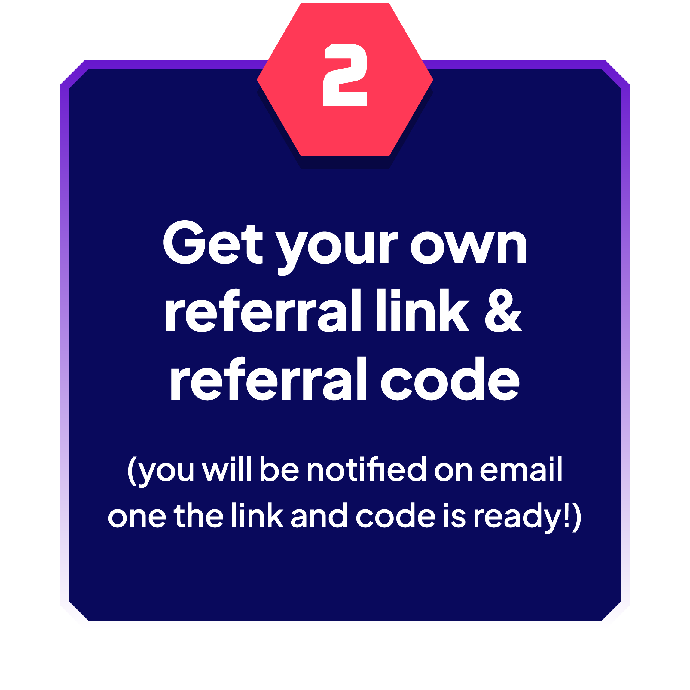 Once registered, you will receive 1 link and 2 referral codes: