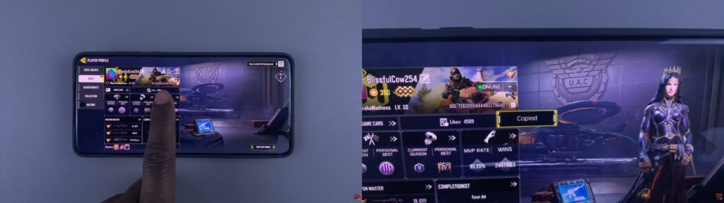 Open Call of Duty Mobile, then tap your profile icon in the top corner of the screen. Inside the profile menu, go to the Basic Info page where your UID number is displayed clearly.