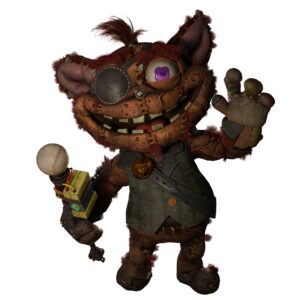Chum Chompkins is unsettling in a completely different way. He’s a plump, red-furred toy who works under The Prototype but secretly acts as an informer for Giblet.