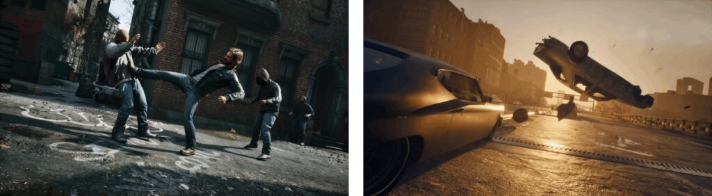 • The gameplay features a momentum-driven brawler combat system with no guns, focusing on hand-to-hand combat and vehicle usage, creating a unique, intense street brawl experience.